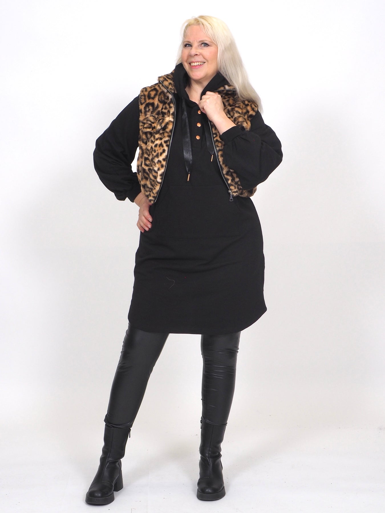 Ihana pörröinen karvaliivi leopardiprintillä