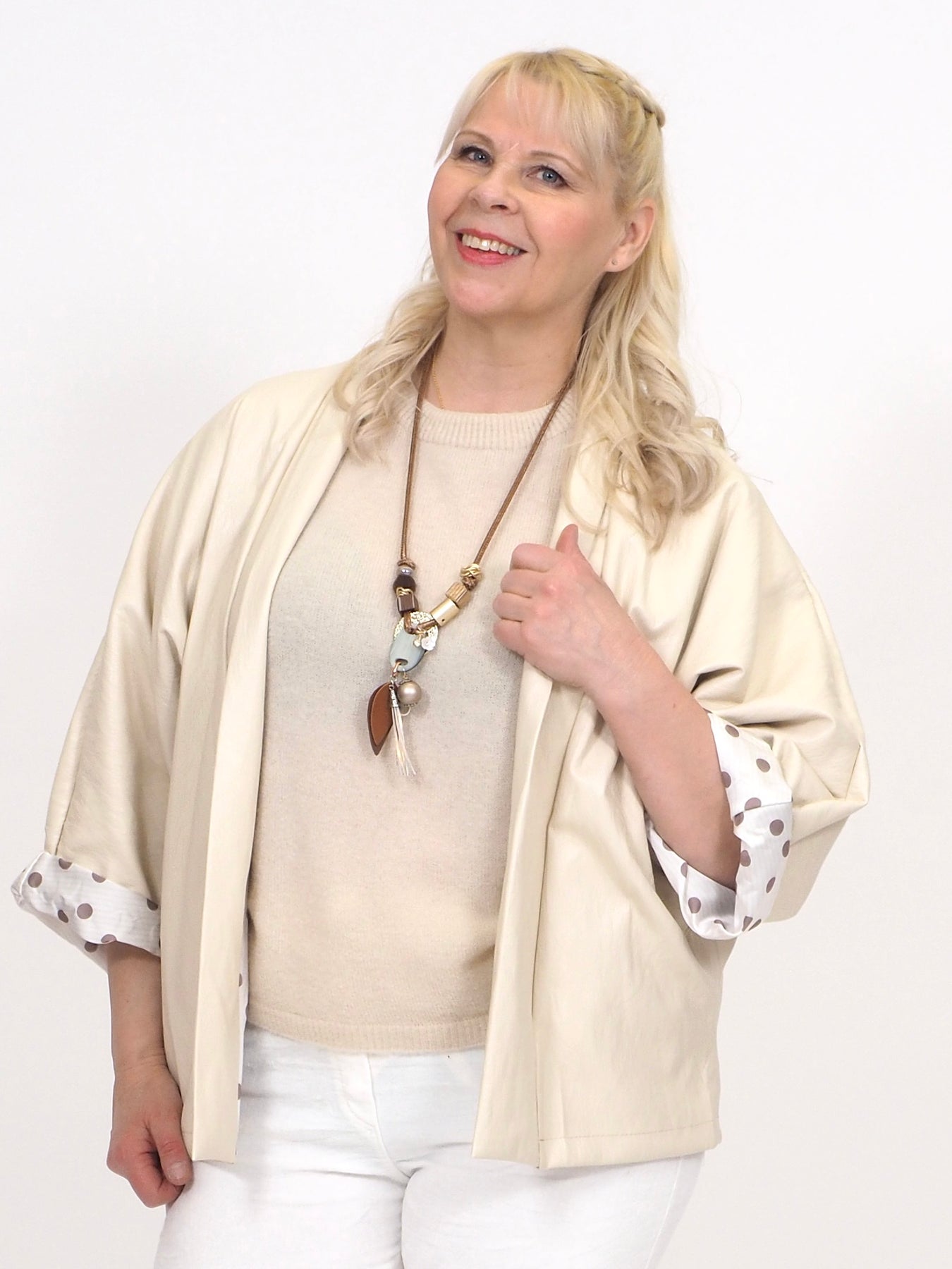 K.K. Tilasin hiekan värisen. Ihana, lämmin ja pehmeä. Sopii lähes kaikkien alaosien kanssa. Tykäsin.