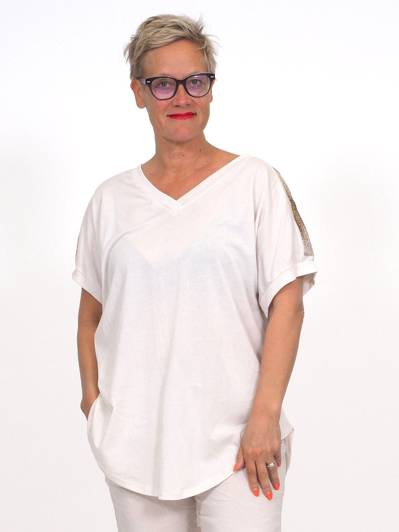 - Kevyt trikoopusero bling-koristein